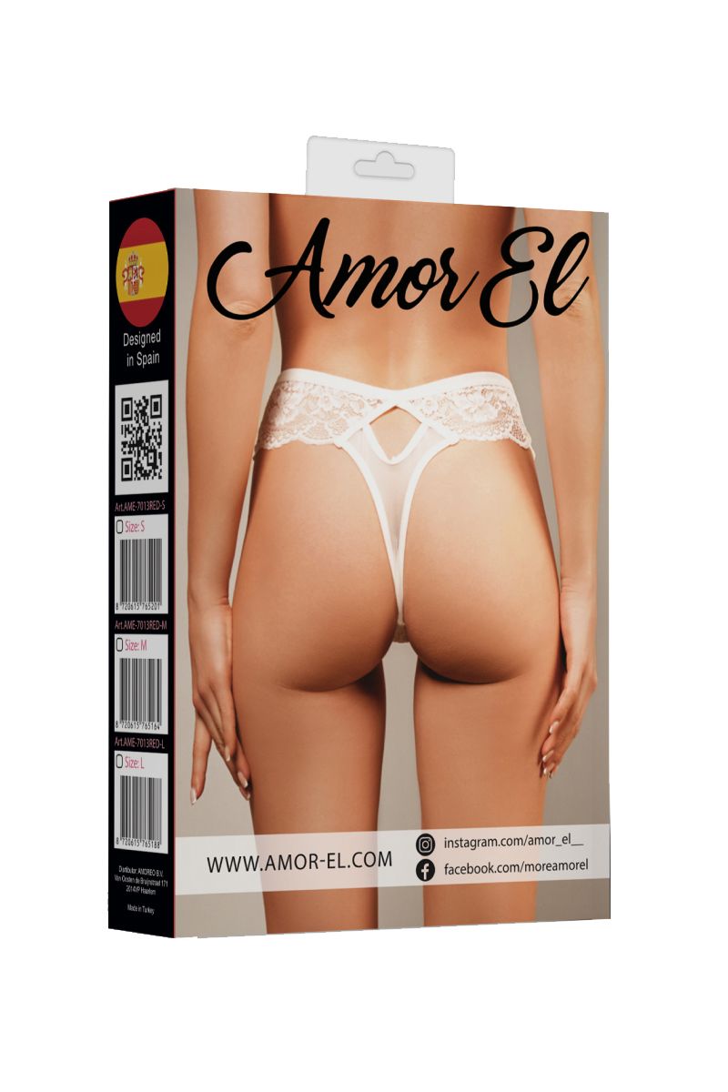 Кружевные трусики-танга с соблазнительными вырезами на передней и задней части. Посадка средняя.