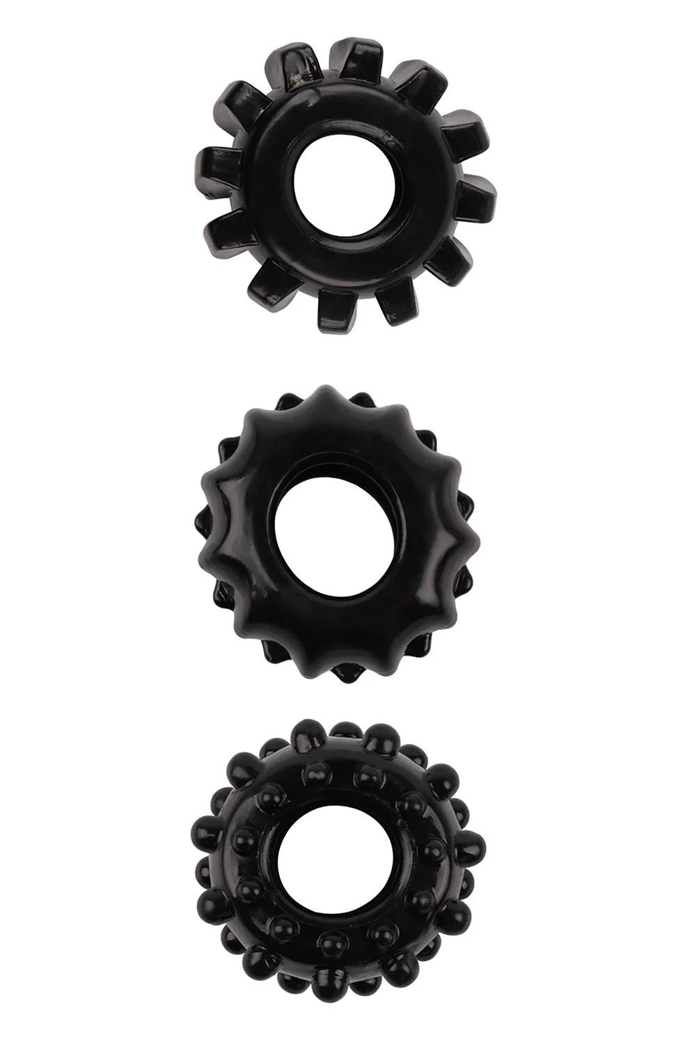 Набор из 3 черных эрекционных колец SET OF 3 COCKRINGS. Кольца имеют разную поверхность и отлично тянутся.