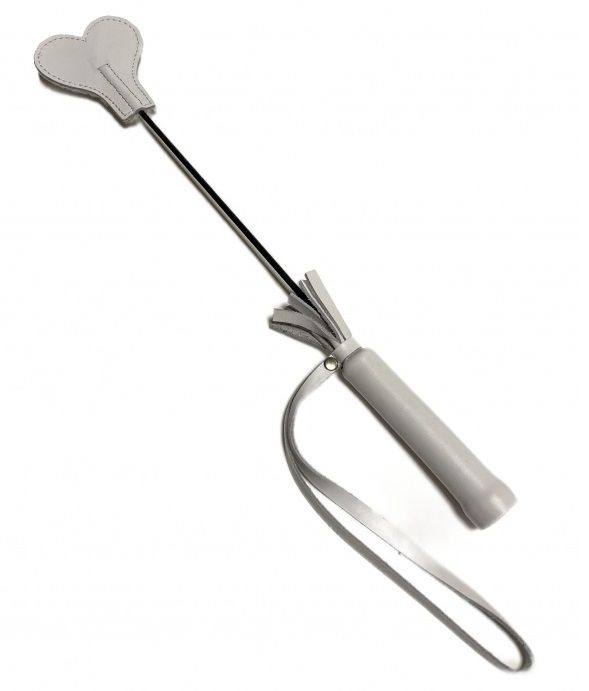 Миниатюрный и очень симпатичный стек из натуральной белой кожи, на конце которого расположен шлепок в виде сердечка. Одна сторона шлепка выполнена из натуральной кожи, а другая из нежнейшего белого эко-меха, невероятно приятного наощупь. Такой дизайн позволит чередовать возбуждающие шлепки кожаной стороной и нежные поглаживания меховой стороной. Для удобства на рукоятке имеется петелька. Этот маленький, но гибкий и яркий стек добавит незабываемых эмоций и ощущений в любовную игру! Длина рукояти - 9 см. Размеры шлепка - 6 х 8 см.