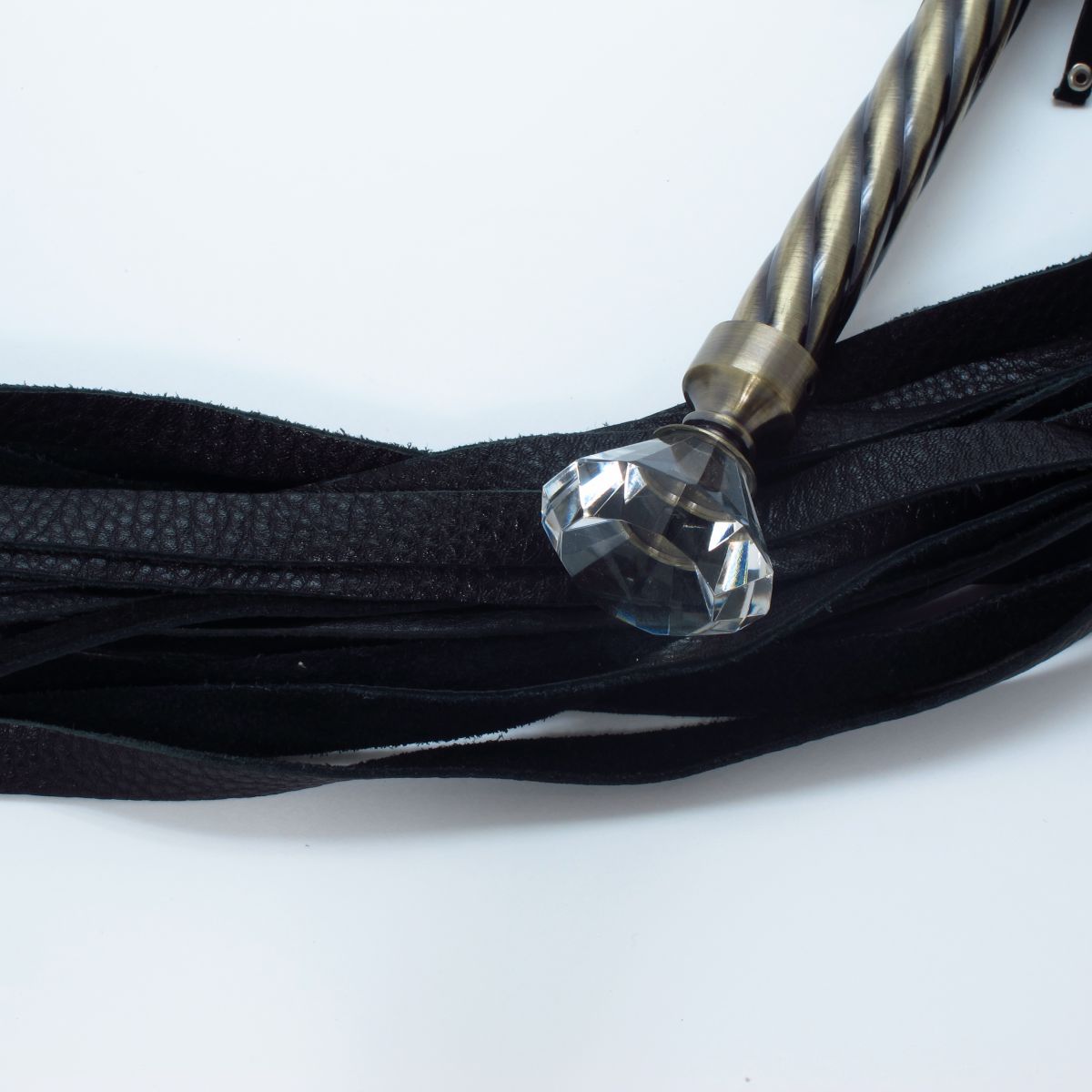Эксклюзивная плеть с металлической ручкой. На конце ручки - крупный прозрачный кристалл.