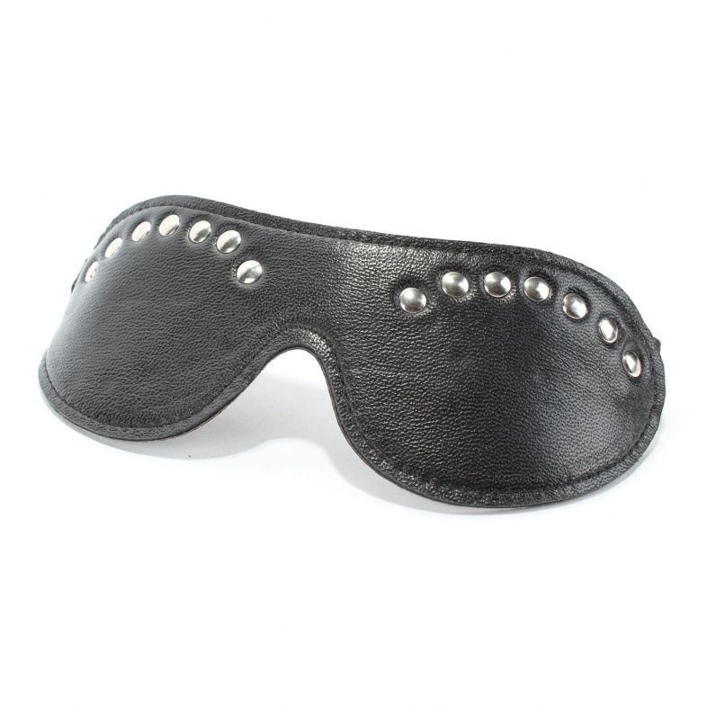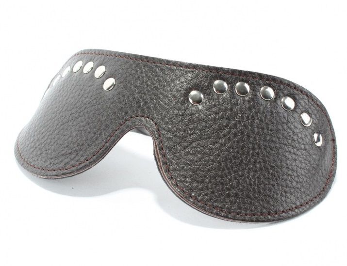 Коричневая маска из кожзама, декорированная заклепками. Крепится к голове при помощи удобной резинки. Длина маски - 19,5 см., ширина - 7 см.