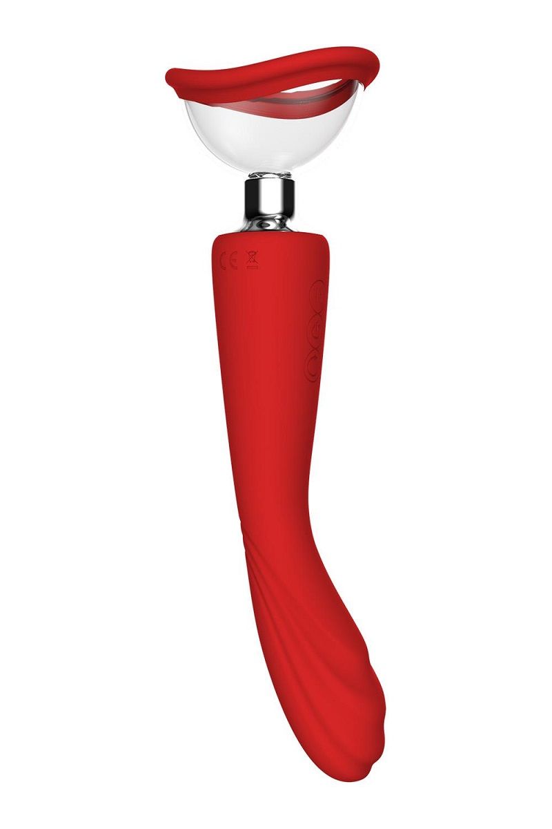 Красный двойной стимулятор Georgia - вибратор и вакуумная помпа. Вибросторона со стимулирующими выступами имеет 7 ритмов вибрации и может использоваться для точки G. Вакуумная сторона (2 сменные насадки разной формы) идеальна для вакуумного массажа клитора, половых губ, сосков. Водонепроницаемость IPX7.