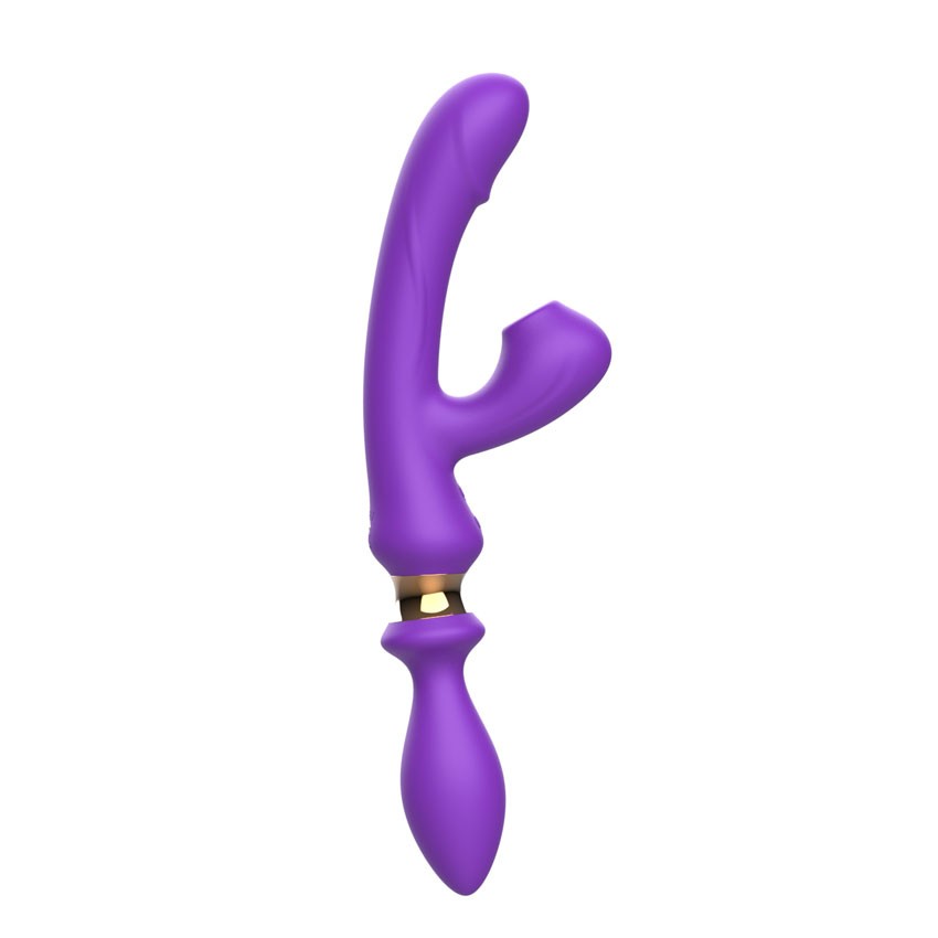 Оригинальный гаджет для разнообразных эротических удовольствий. Одна сторона секс-игрушки представляет собой вибратор с специальным отростком для стимуляции клитора, другая – анальную втулку. В арсенале интимного аксессуара разнообразные режимы вибрации и вакуума. 10 режимов вибрации, 10 режимов вакуума. Вибрация ощущается в стволе и втулке. Может включаться вместе и по отдельности. Режим вакуума работает в специальном отростке. При включении имитирует посасывание. Вибрация в стволе и вакуум в отростке работают только одновременно. Ствол гаджета хорошо гнётся в разные стороны. Специальный отросток и втулка гнутся в разные стороны только у основания. Рабочая длина вагинальной части - 12,4 см, диаметр - 3,4 см. Рабочая длина анальной части - 9,1 см, диаметр - 3,8 см.