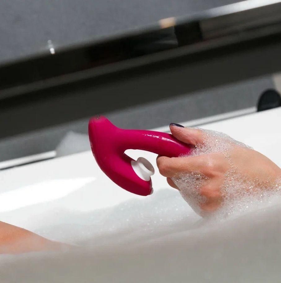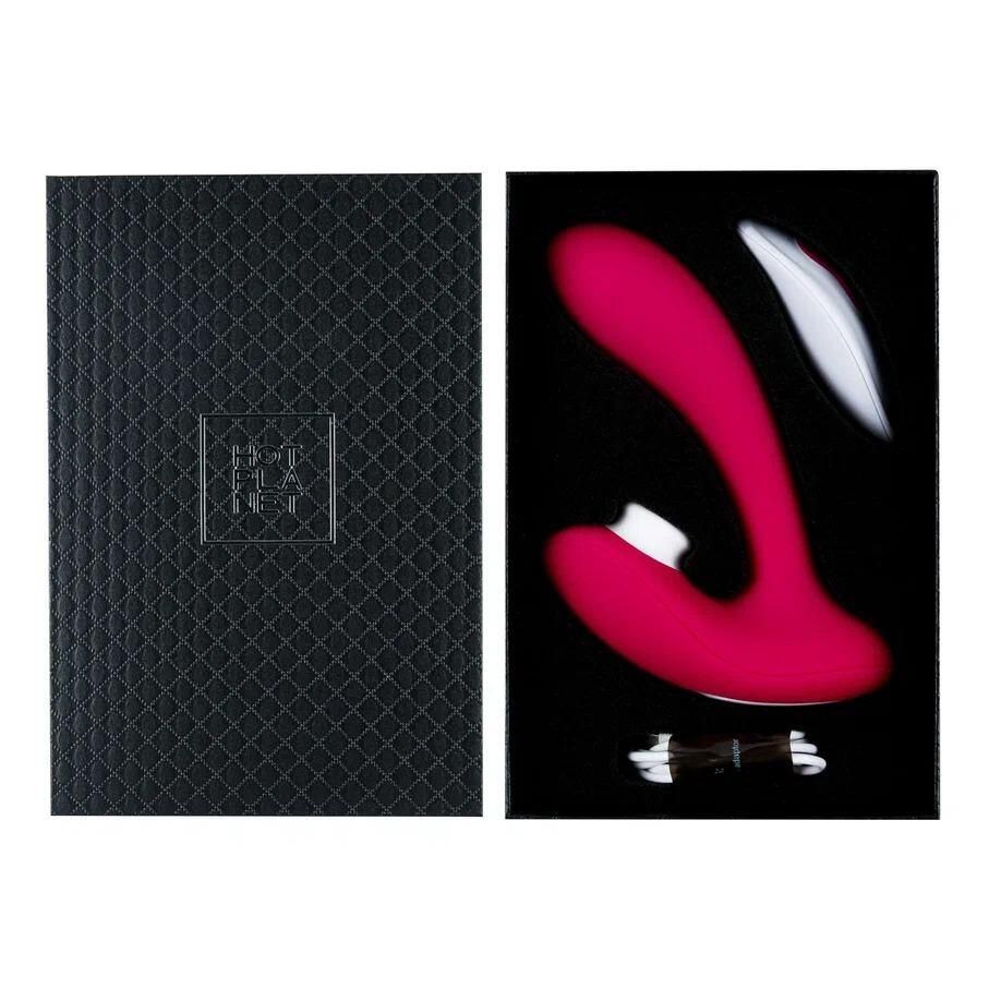Hot Planet Venus — игрушка, стимулирующая сразу две чувствительные зоны. Вибрация воздействует на точку G, а вакуумно-волновая стимуляция — на клитор. У Venus два мощных мотора, которые управляются независимо друг от друга. Выбор за вами: наслаждайтесь чем-то одним или комбинируйте разные виды стимуляции так, как нравится именно вам. Hot Planet Venus позволяет получить оргазм в любом месте и в любое время: благодаря своему небольшому размеру, игрушка может быть использована когда и где угодно. Изогнутая форма Venus идеально подходит для интенсивной внутренней стимуляции, а гибкость вагинального отростка позволяет подстраивать игрушку под индивидуальные особенности тела. Вибратор полностью водонепроницаем и сделан из высококачественного медицинского силикона, за которым легко ухаживать. Venus очень просто управлять. Для включения или выключения игрушки нажмите и удерживайте кнопку питания в течение нескольких секунд, пока не загорится световой индикатор. Это сигнал, что игрушка перешла в режим ожидания. Теперь можно переключать режимы вибрации и клиторальной стимуляции коротким нажатием кнопок. Кнопка питания отвечает за режимы вакуумно-волновой стимуляции, а вторая кнопка с изображением волны управляет вибрацией. При нажатии кнопок во время работы девятого режима любого стимулятора, игрушка переводит соответствующую часть в режим ожидания. Т.е., если вы хотите оставить включенной только вибрацию, просто коротко нажимайте на кнопку управления вакуумной стимуляцией, чтобы дойти до режима ожидания. Для использования с пультом ДУ сначала включите игрушку с помощью кнопки на её корпусе. Когда игрушка включена, вы можете включить пульт долгим нажатием на кнопку питания на нем и переключать режимы работы стимуляторов так же, как делали бы это с помощью кнопок на самой игрушке. Когда вы закончите, выключите и пульт, и игрушку долгими нажатиями на их кнопки питания. При выключении Venus с пульта ДУ, игрушка переходит в режим ожидания на 5 минут. Это значит, что в течение 5 минут стимулятор можно снова включить, используя только пульт. Через 5 минут ожидания Venus и пульт ДУ автоматически выключаются, и для повторного включения требуется нажать кнопку на корпусе игрушки. Пульт ДУ также имеет аккумулятор и заряжается от сети, благодаря чему вам не придется менять батарейки.